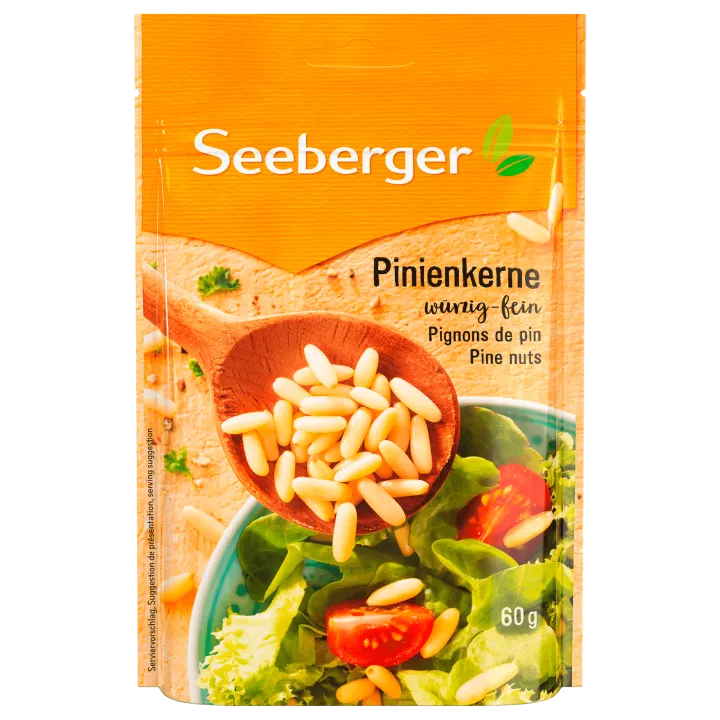 Die Kerne in einer Pfanne goldbraun rösten und komplett abkühlen lassen. Basilikum von den Stielen befreien und den Knoblauch schälen. Zusammen mit den restlichen Zutaten in einer Küchenmaschine zu einem Pesto verarbeiten. Mit Salz und Pfeffer abschmecken.